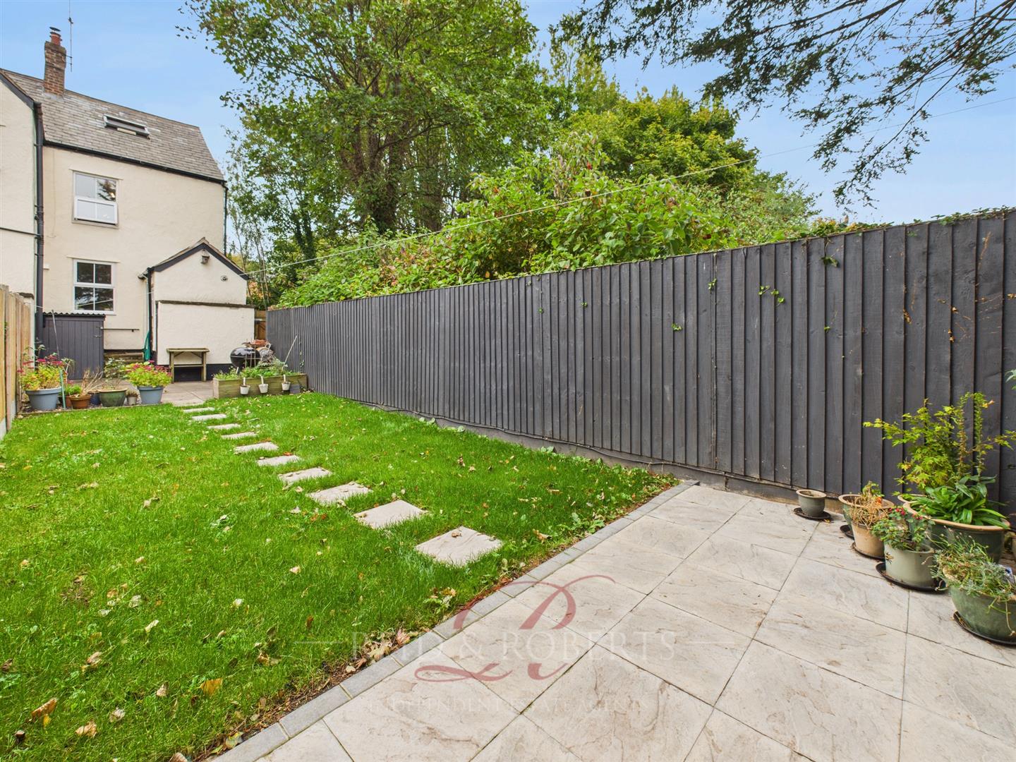 The property enjoys a low-maintenance, enclosed, and private rear garden, perfect for relaxing or entertaining. Featuring paved patio areas ideal for alfresco dining, the garden is mainly laid to lawn and includes a storage shed, additional storage unit, and an outbuilding, offering excellent space for garden equipment or hobbies. The area is neatly bordered by wood panelled fencing, with a wooden gate providing access to the front of the property. Although there is no private driveway, residents benefit from convenient parking within a nearby communal car park.