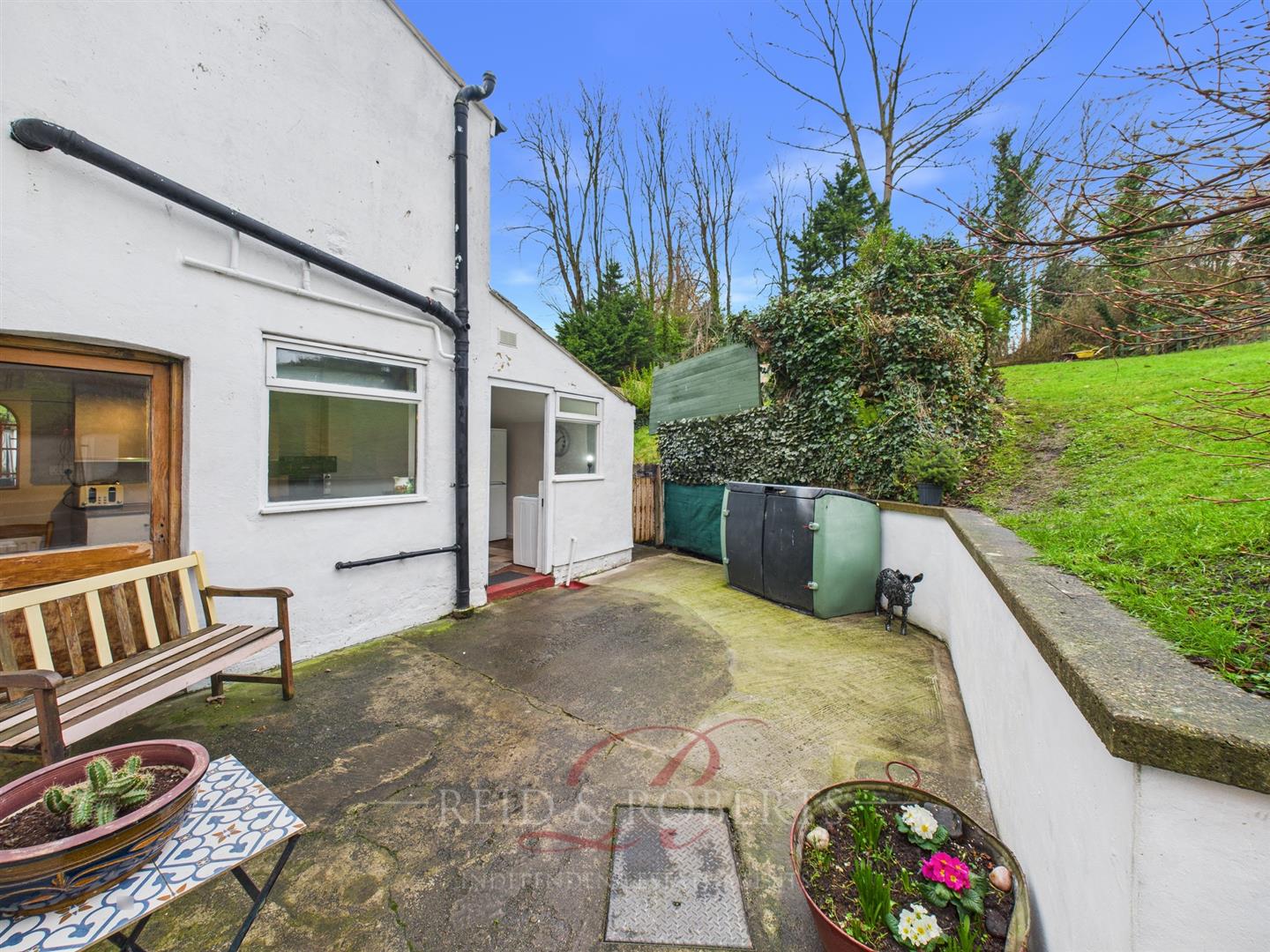 The garden also features a further paved patio with a wooden shed, a low-maintenance barked area, and a second shed ideal for storage or hobbies. Fully enclosed by fencing, hedging, and mature trees for privacy, the space combines practicality with charm, further enhanced by a discreetly located septic tank.