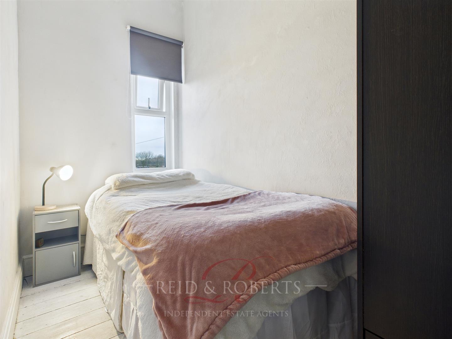 Ideal as a nursery, guest room, or home office, the third bedroom includes a newly fitted UPVC double-glazed window to the front elevation providing views, wooden flooring, power points, and space for a single bed and storage.