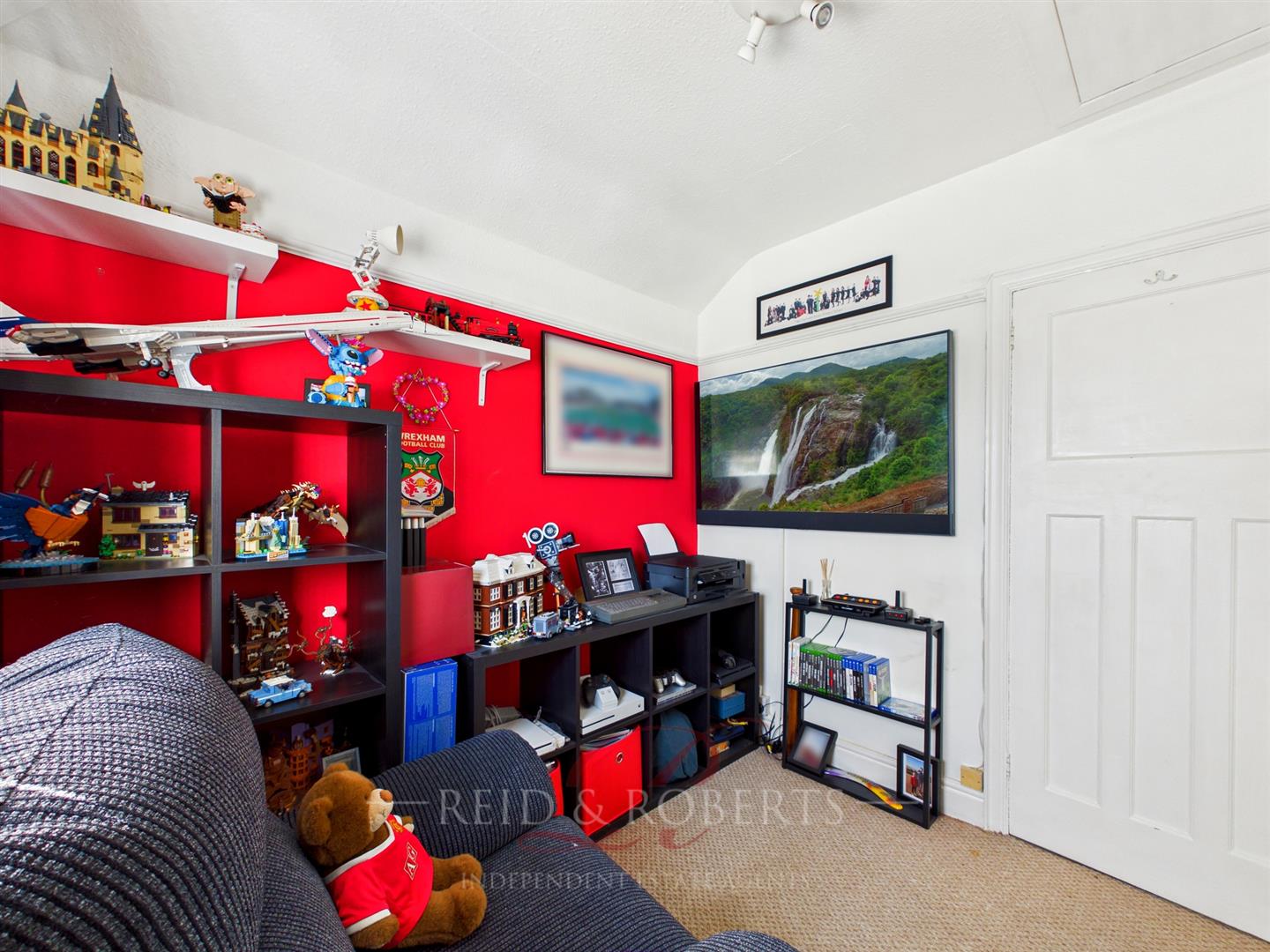 UPVC double glazed window to the rear, panelled radiator, carpeted flooring and picture rail, suitable as a bedroom, nursery, or study.