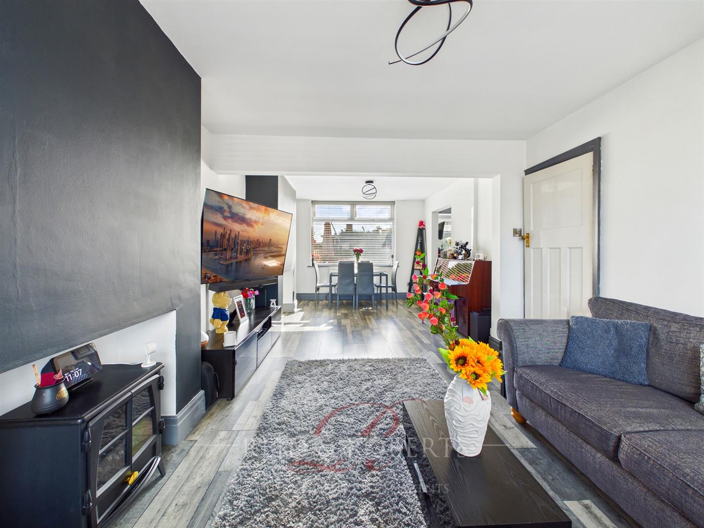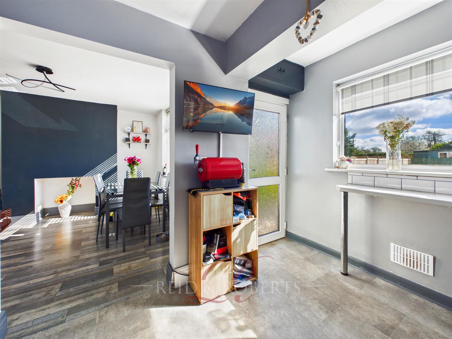 A bright open plan lounge and dining area, with a UPVC double glazed bay window to the front and a UPVC double glazed window to the rear, allowing natural light to fill the space. The room features a former chimney breast, two panelled radiator. Television and telephone point. Opening into: