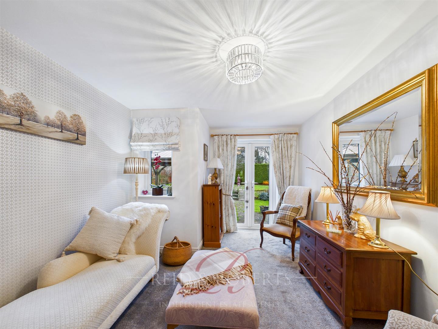 A versatile room currently used as a sitting room but equally suitable as a double bedroom. Features include carpeted flooring, central ceiling light, radiator, telephone point, UPVC window and French doors opening onto the rear garden.