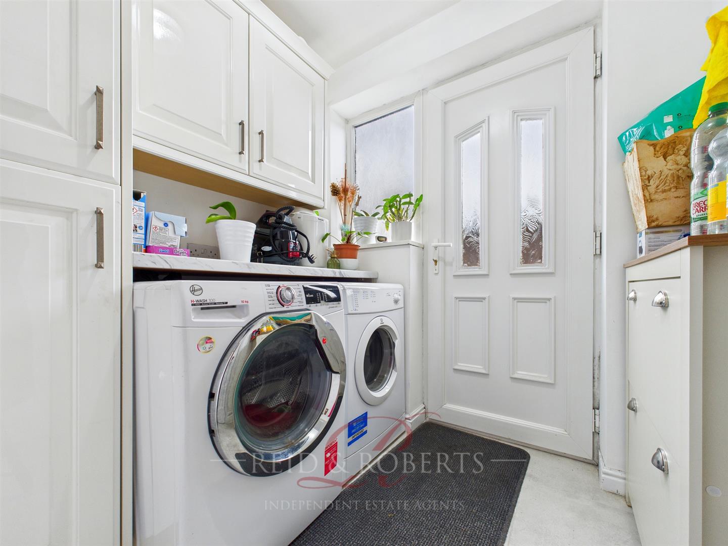 Accessed from the kitchen and fitted with matching units and worktops, plumbing for appliances, loft access and a UPVC door providing external access.