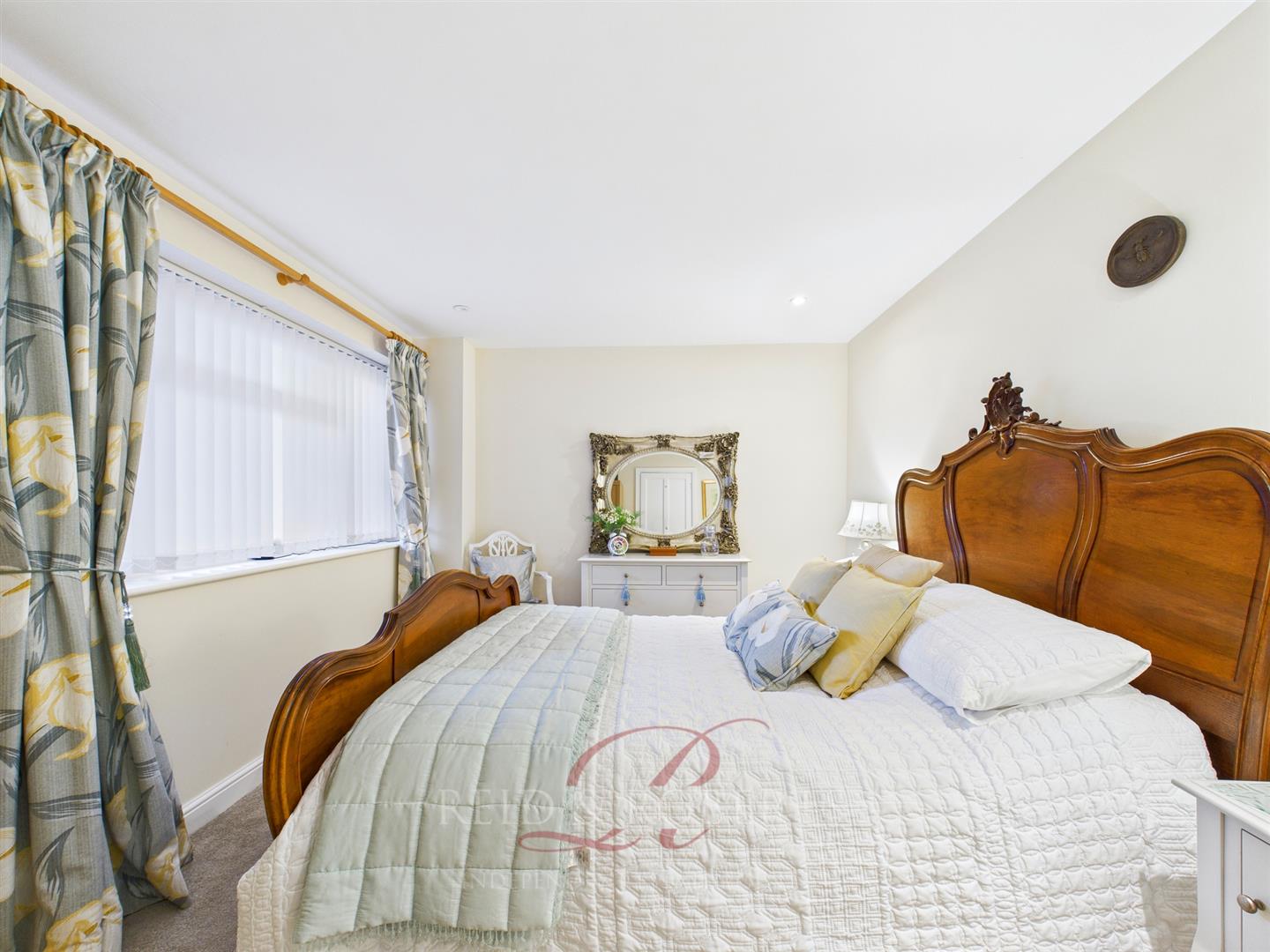 Another well-proportioned double bedroom finished in neutral décor, with carpeted flooring, inset spotlights, radiator and a double-glazed UPVC window to the front elevation.