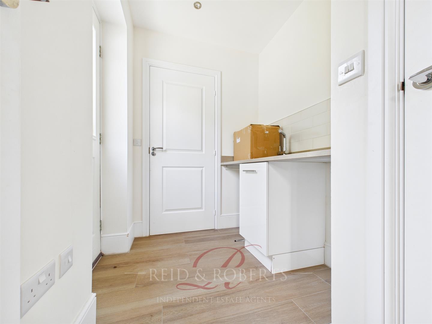 Additional work surface and inset sink, plumbing for washing machine and dryer. Door to ground floor W/C. Radiator and power points.