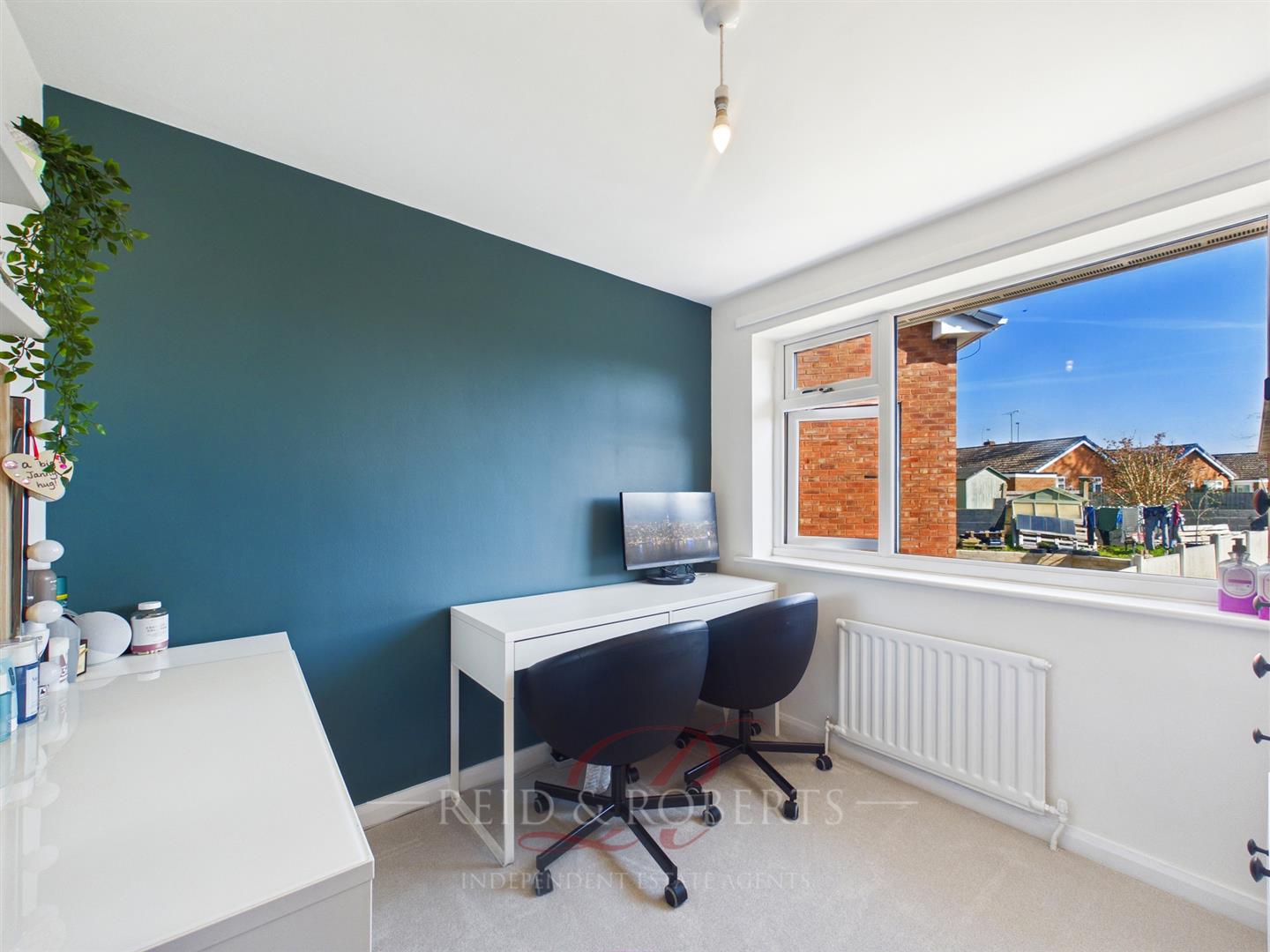 A versatile fourth bedroom, ideal as a nursery, home office or single bedroom, with UPVC double glazed window to the rear elevation enjoying views over the landscaped garden, single panel radiator, and central ceiling light point.