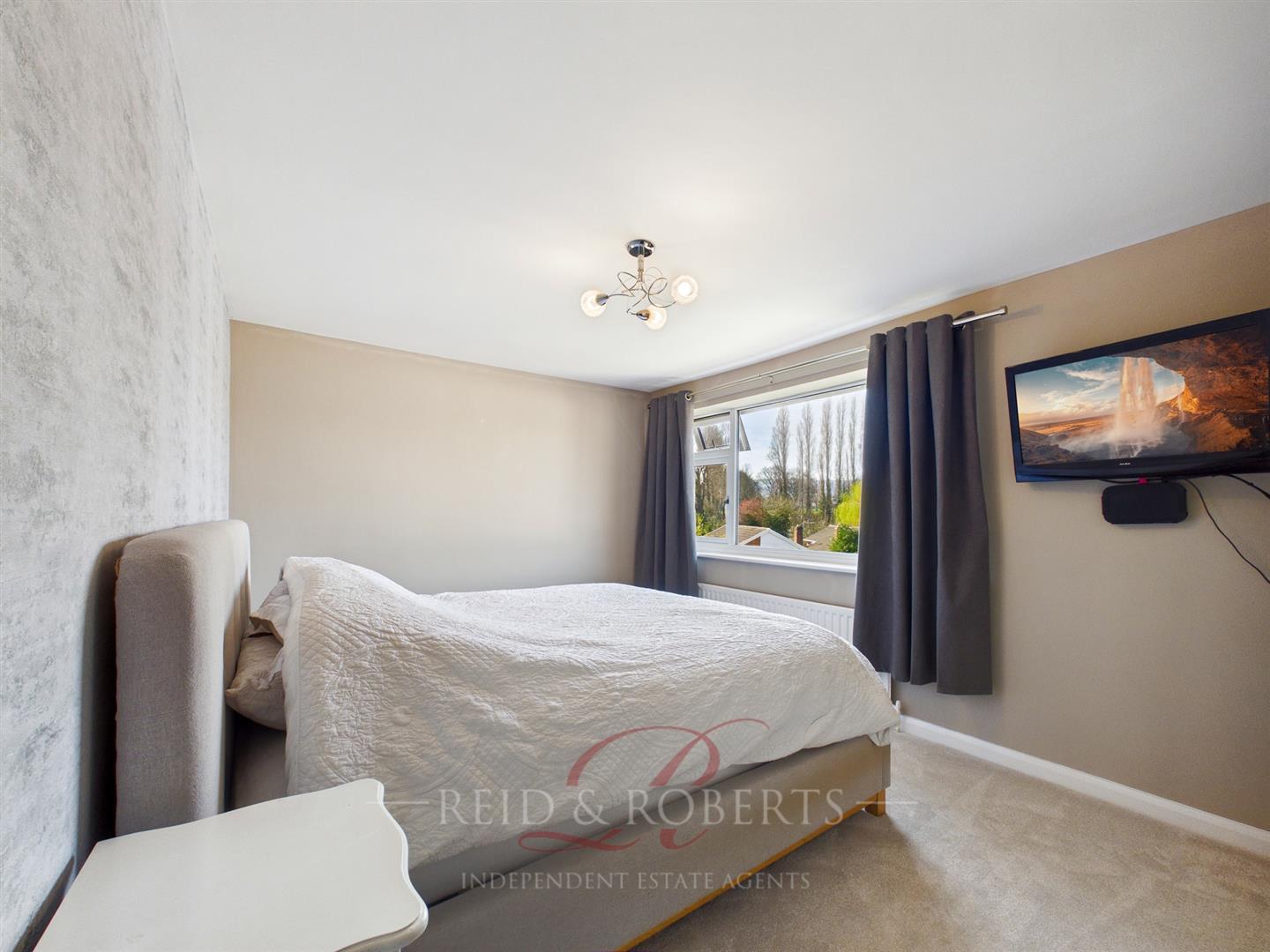 A good-sized bedroom with UPVC double glazed window to the front elevation, single panel radiator, and central ceiling light point. Also benefiting from a built-in storage cupboard.