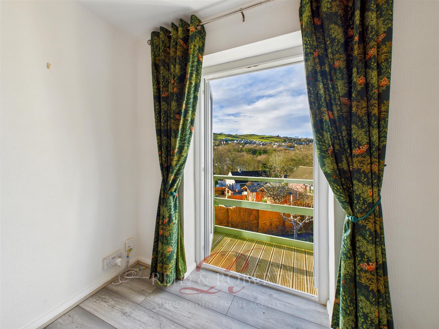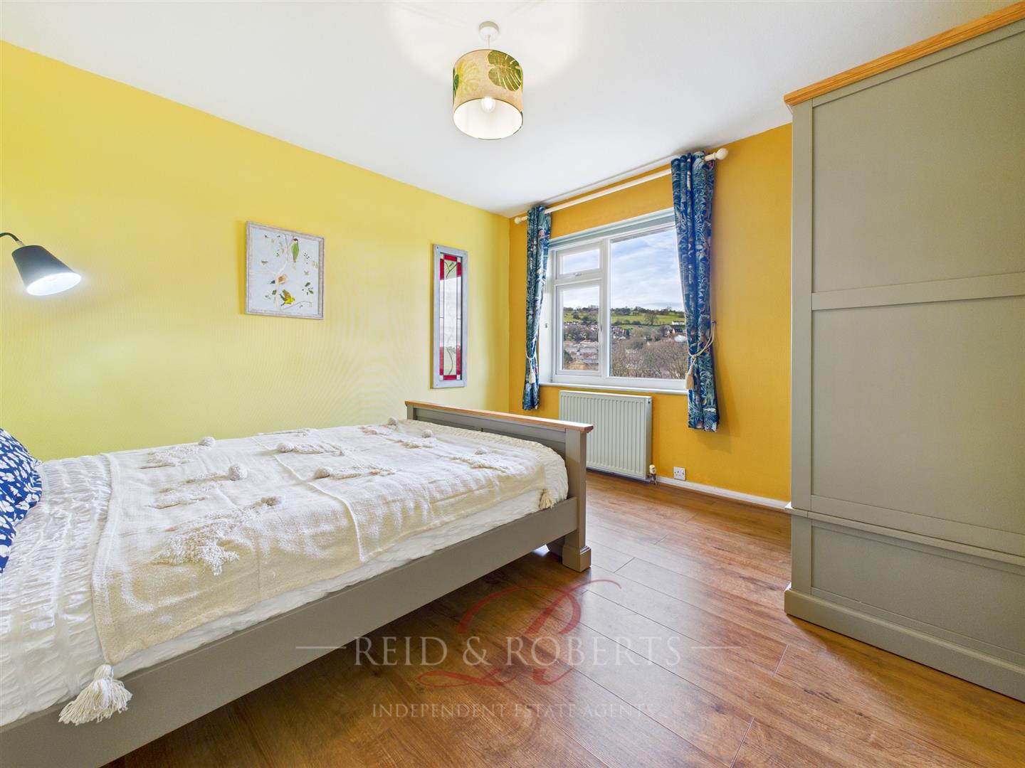 A generously sized bright double bedroom located at the rear, enjoying attractive views across Holywell via the UPVC double-glazed window. The room includes wood-effect laminate flooring, ceiling light, power points and a panelled radiator, with plenty of room for additional furniture.