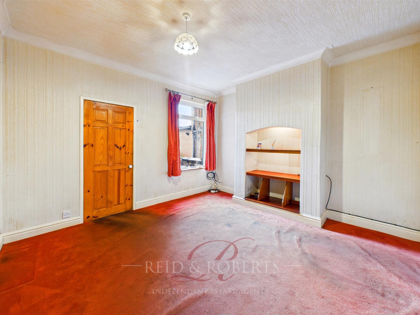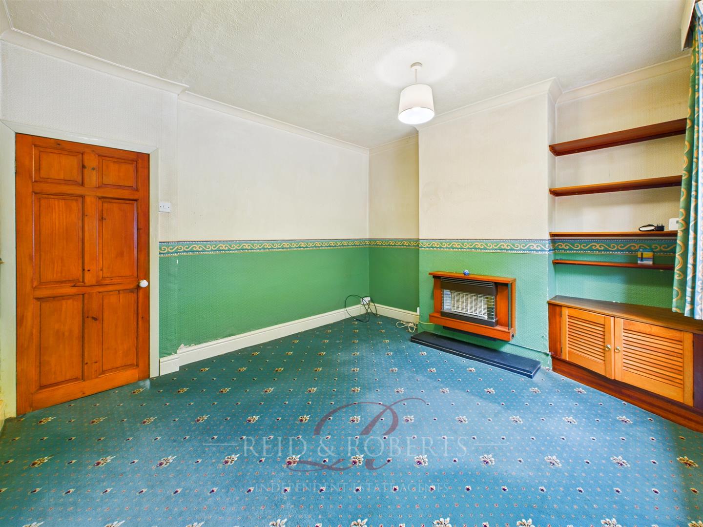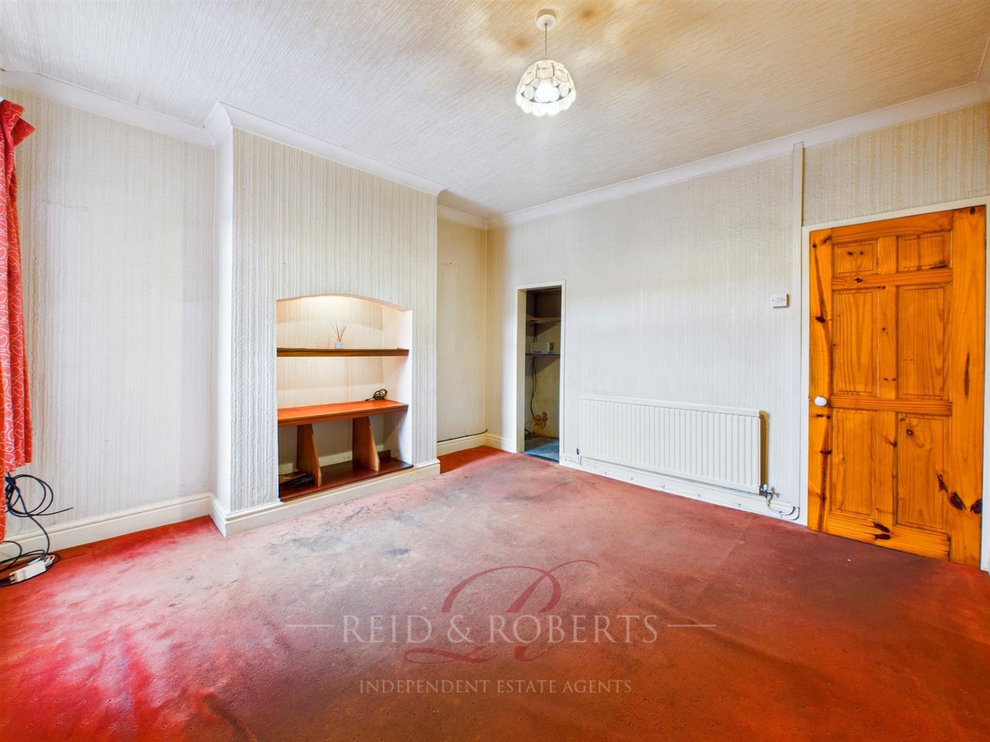 UPVC double glazed window to the rear elevation. Chimney breast inset with shelving and lighting, panelled radiator, under stairs storage cupboard, carpeted flooring, ceiling light point, television point. Door to: