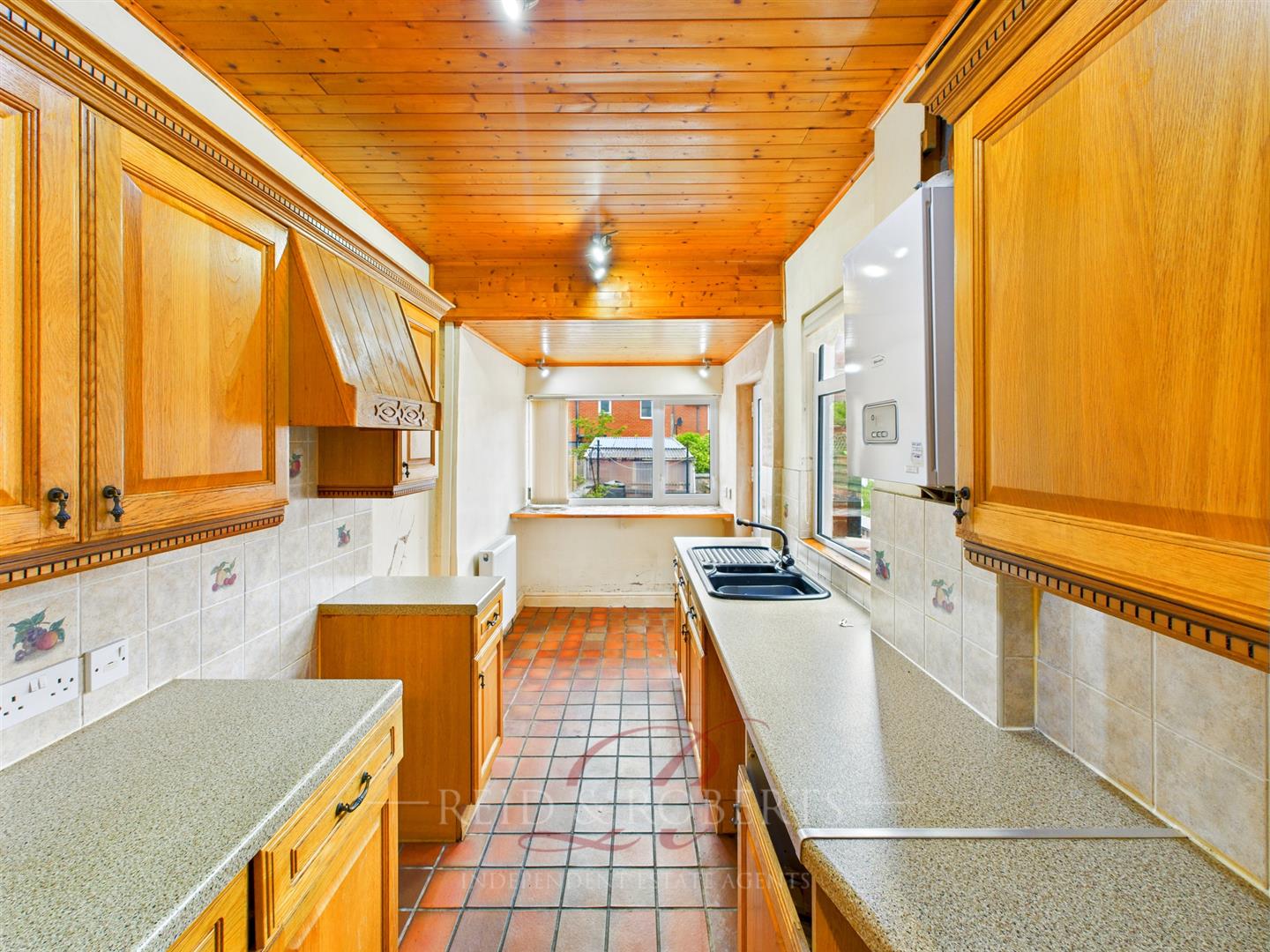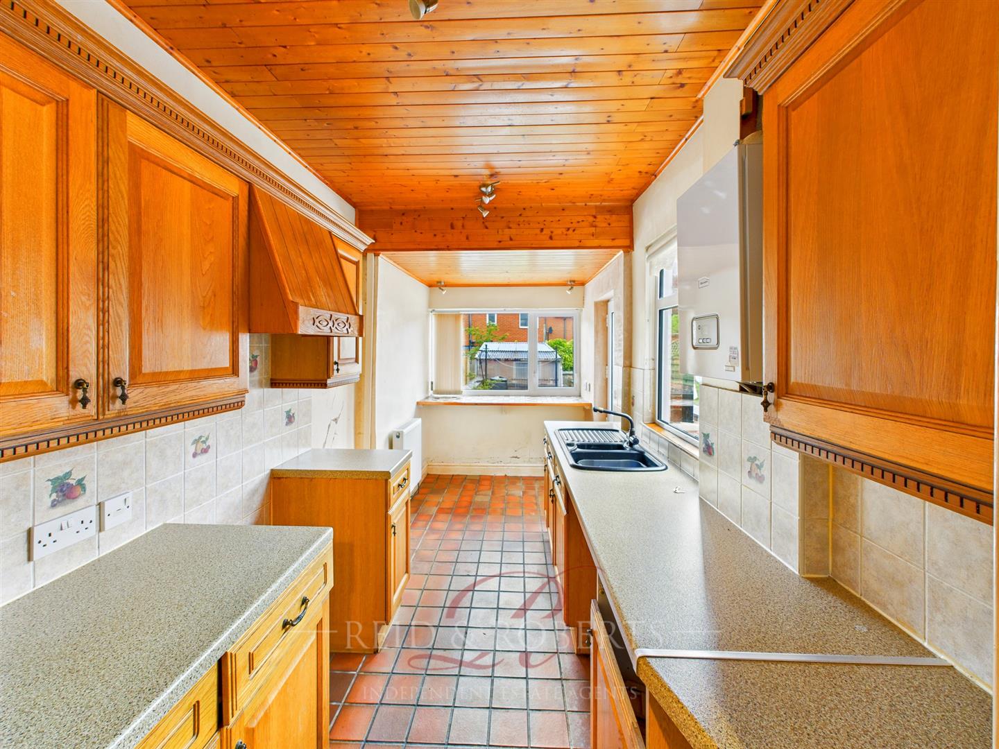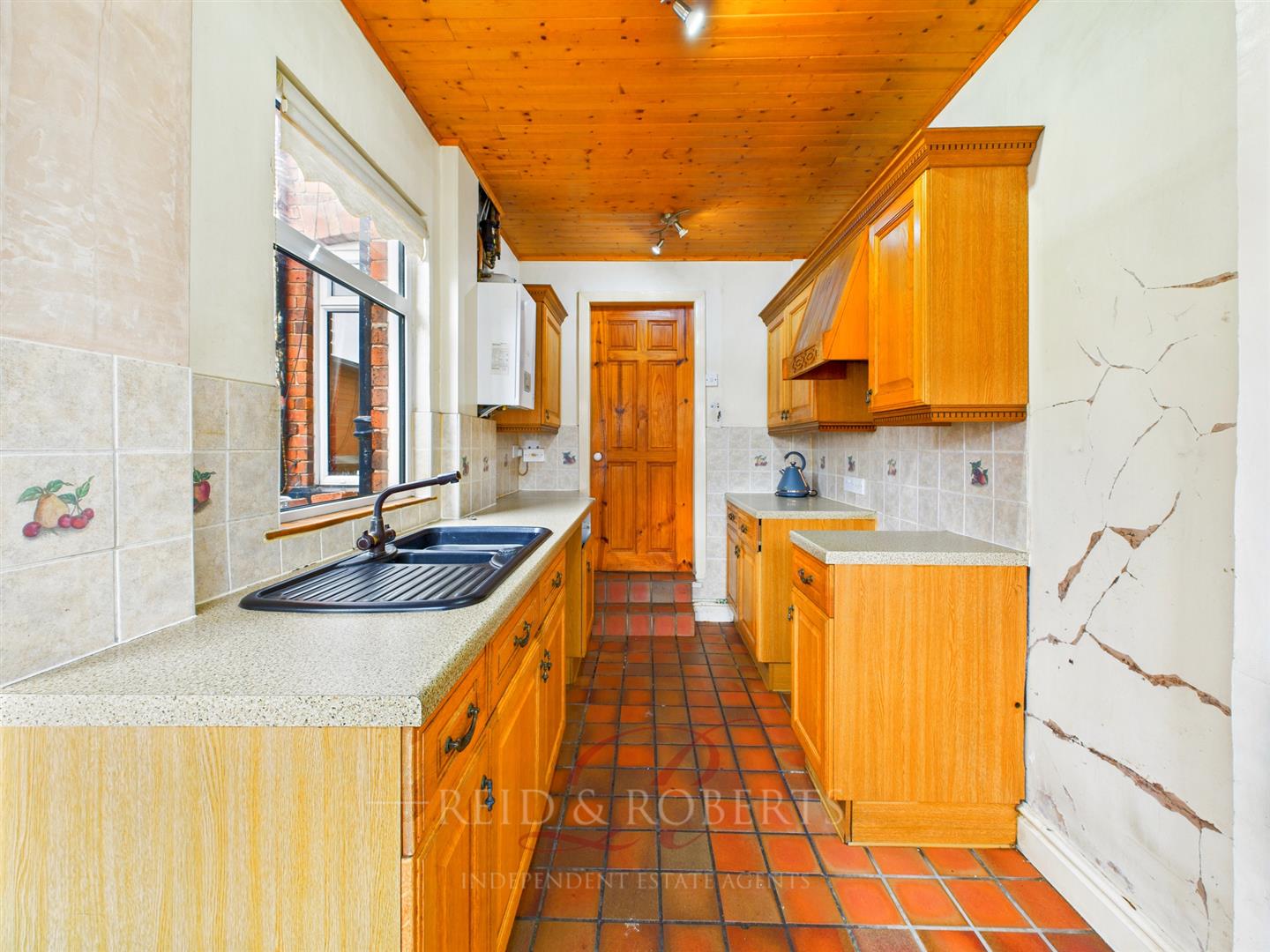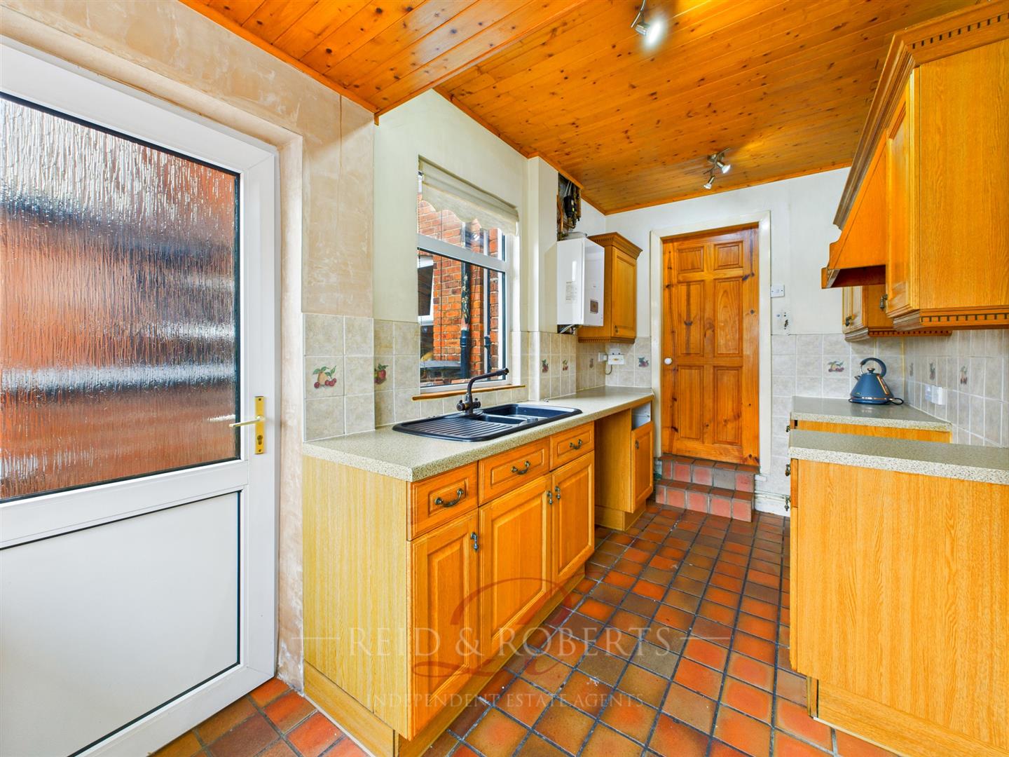 Fitted with a range of wall, drawer, and base units with complementary work surfaces over. Inset 1.5 bowl composite sink unit with mixer tap, space for cooker with extractor fan above, part-tiled walls, and space/plumbing for washing machine. Space for fridge/freezer. Wall-mounted 'Glowworm' boiler. Tiled flooring, pine-panelled ceiling with ceiling light point. UPVC double glazed windows to the rear and side elevations.