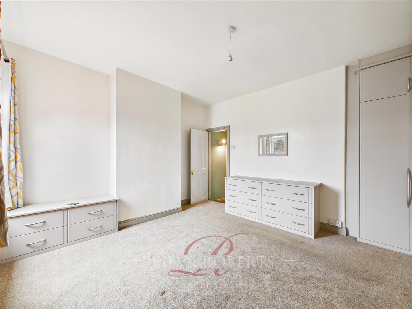 UPVC double glazed window to the rear elevation. Fitted wardrobes and drawer units framing a central bed space with integrated lighting. Carpeted flooring, panelled radiator, ceiling light point. Door to: