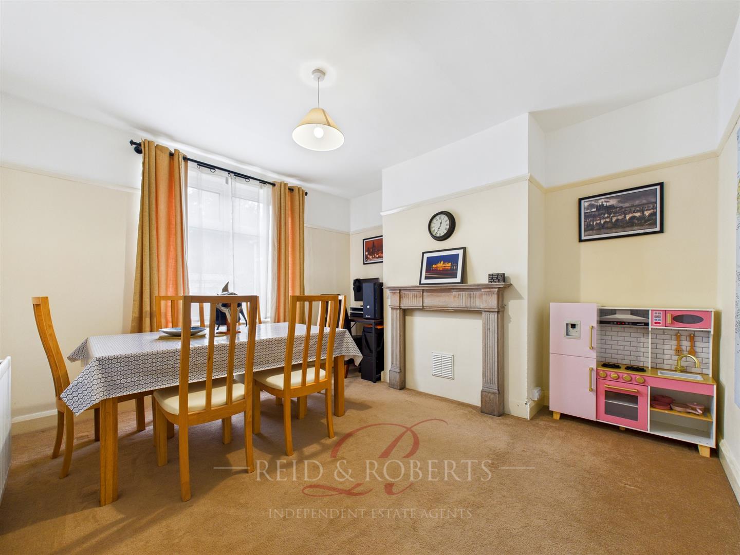 A versatile room with a decorative fireplace surround, radiator, power points, and a rear-facing UPVC double-glazed window overlooking the garden. Ideal as a dining space, snug, or additional sitting room.