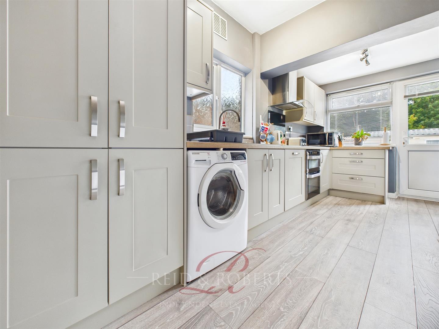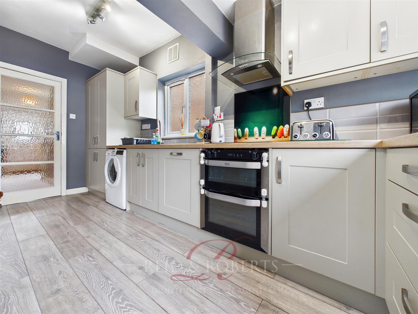 Natural light floods the room through the UPVC double glazed windows, while a matching UPVC rear door opens directly to the garden – making this a bright, practical, and highly sociable space, ideal for everyday family life as well as entertaining.