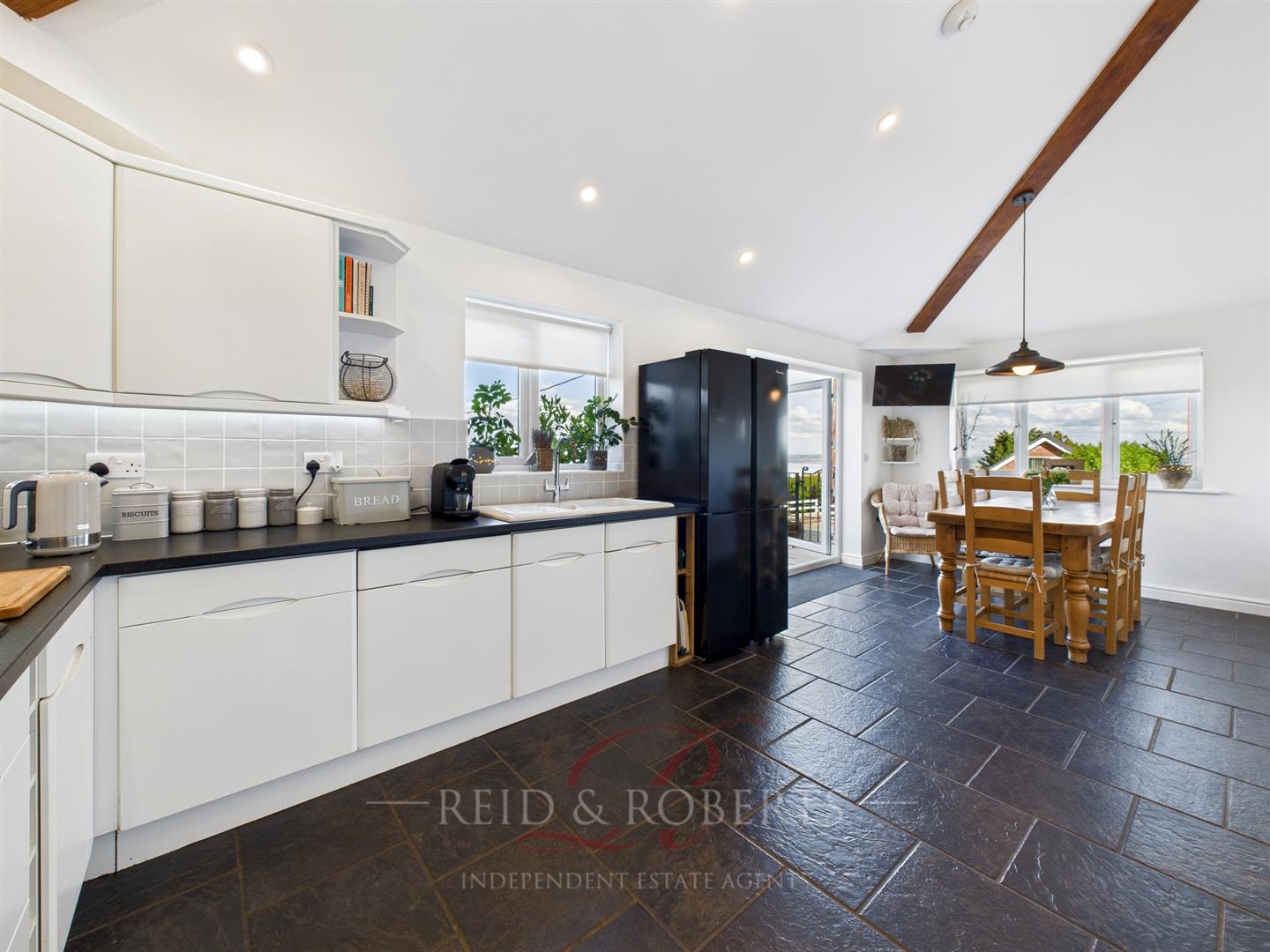 Step inside and you are welcomed into thoughtfully designed accommodation. The ground floor features a stylish open-plan kitchen / diner with adjoining utility room, a bright and inviting living room with a feature log burner, and a versatile second sitting room. A dedicated home office with potential to be a fifth bedroom and a spacious shower room, adds to the home’s flexibility. Upstairs, you’ll find four generously sized bedrooms and a contemporary family bathroom. The impressive master bedroom boasts a spacious en-suite, dual-aspect windows, and breathtaking views of the estuary, while two further double bedrooms include built-in wardrobes, offering excellent storage solutions.
