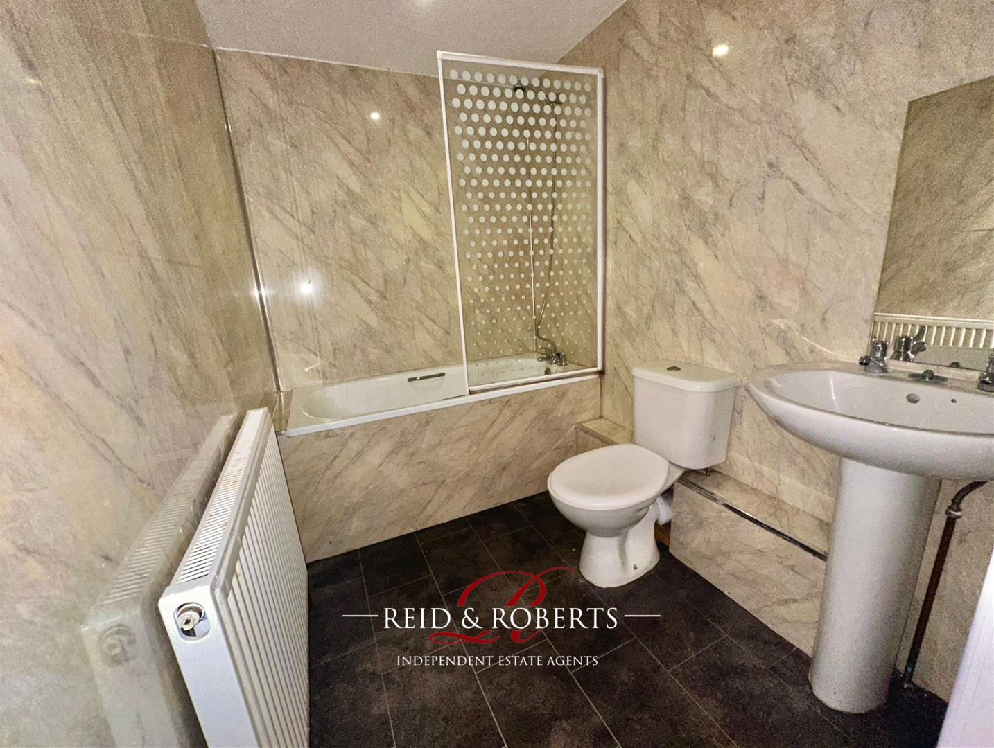 A three piece suite comprising of a bath with mixer tap shower attachment over and screen. Double glazed window to the front elevation. Fully Single panelled radiator, tiled flooring, double glazed frosted window to the rear elevation