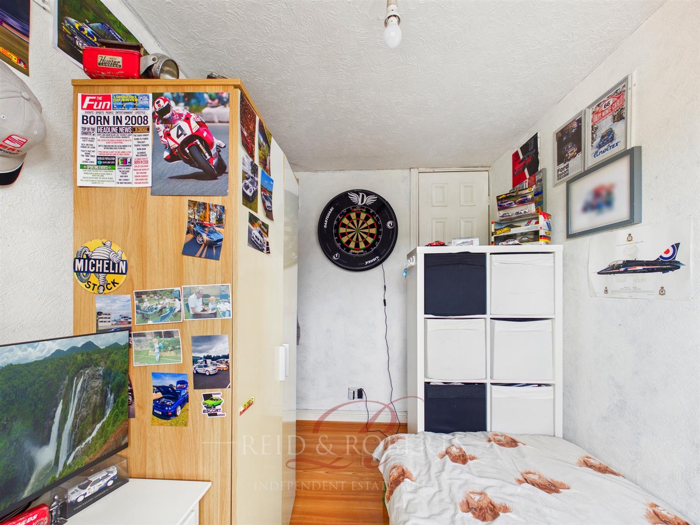 Bedroom two is a single bedroom, ideal as a child’s room, guest room, or home office. The room benefits from wood-effect laminate flooring, a textured ceiling with ceiling light, and a single panelled radiator.