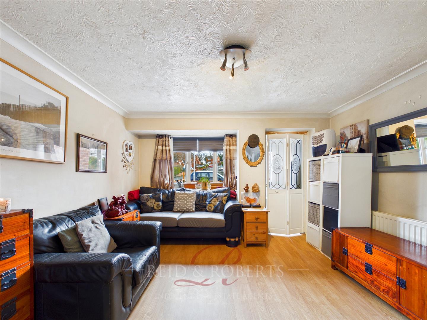 The lounge is a bright and spacious reception room offering a comfortable living space ideal for relaxing or entertaining. The room features wood-effect laminate flooring, a double panelled radiator, and textured and coved ceilings with a ceiling light. A large double glazed UPVC window to the front elevation allows plenty of natural light to flood the room.