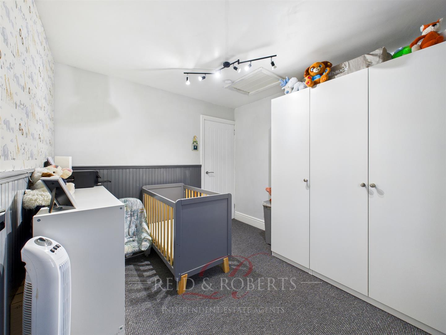 Currently used as a nursery, Bedroom Three is a good-sized double that could serve as a guest room, office, or children’s bedroom. The room includes built-in wardrobe storage and loft access.
