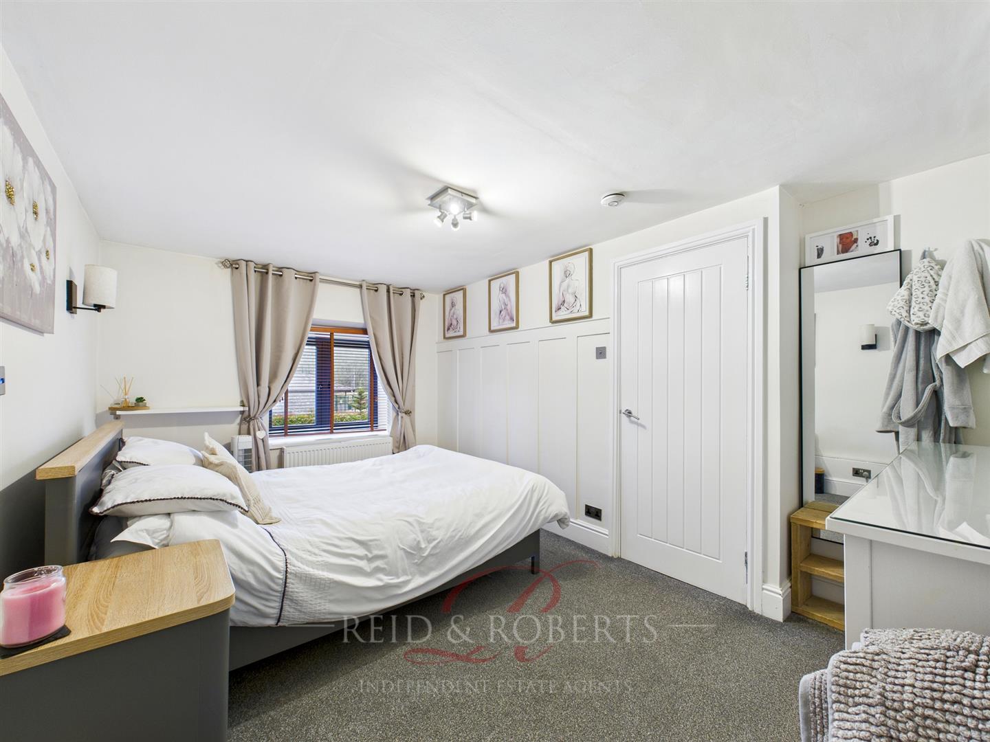 The main bedroom is a large and calming double, with plenty of space for a king-size bed and furniture. A separate room currently used as a dressing area could easily be converted into an en-suite or a bespoke dressing room. This suite offers a peaceful retreat overlooking the garden.