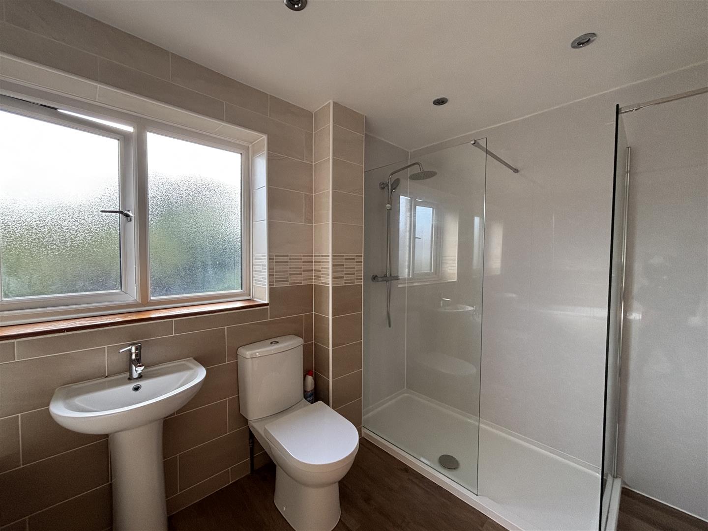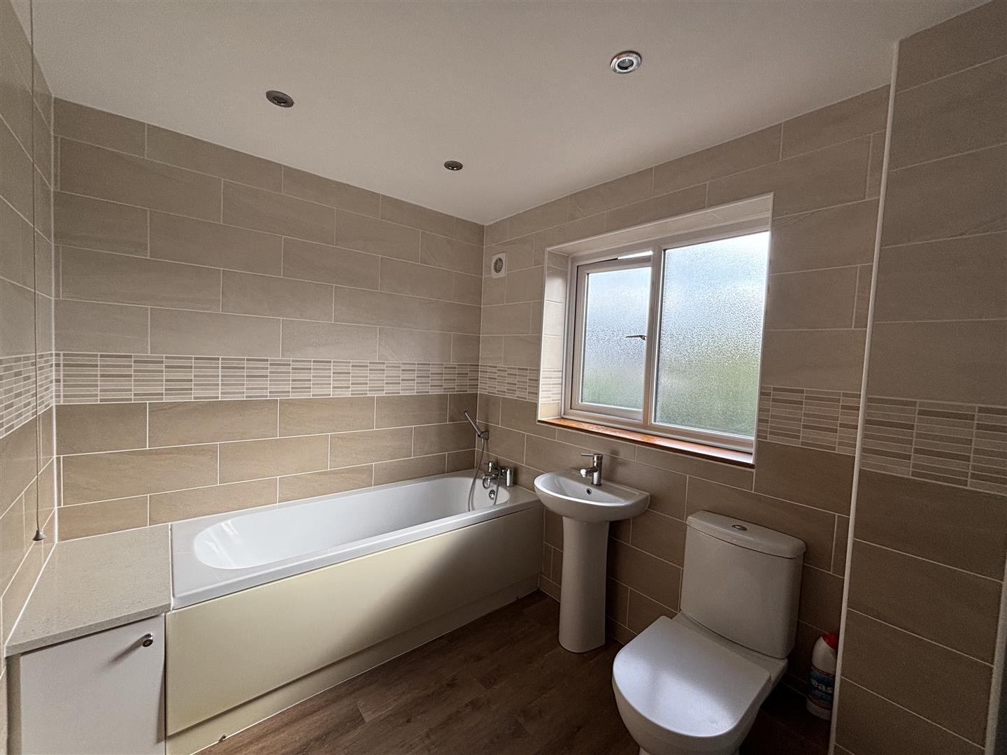 To the first floor, there is a generous principal bedroom with built-in storage, along with two further double bedrooms. The accommodation is completed by a well-appointed family bathroom, featuring a four-piece suite including a walk-in shower.