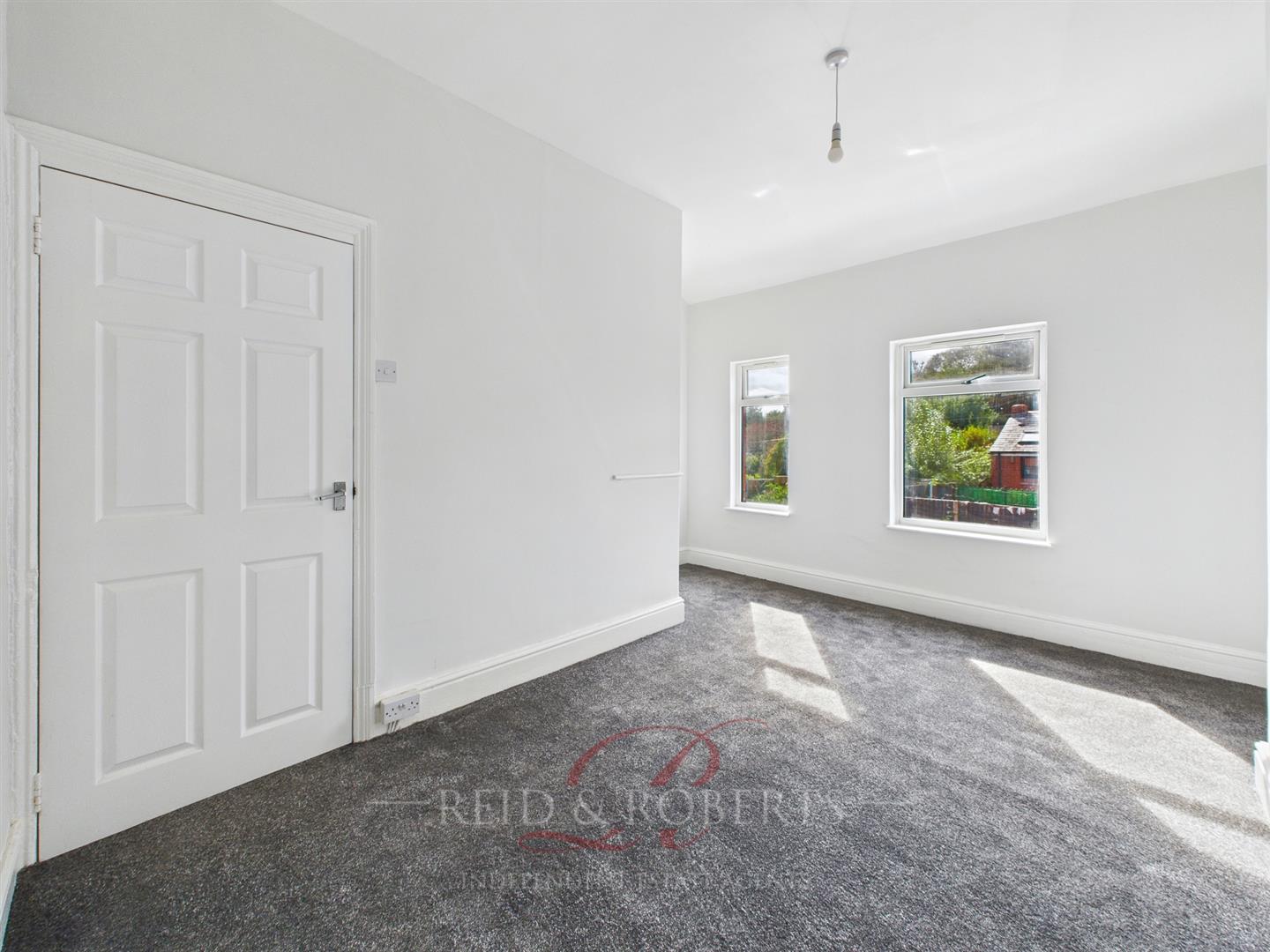 UPVC double glazed window to the rear elevation, dormant fireplace with original brick surround, double panelled radiator, ceiling light point, carpet flooring, and door into Kitchen.