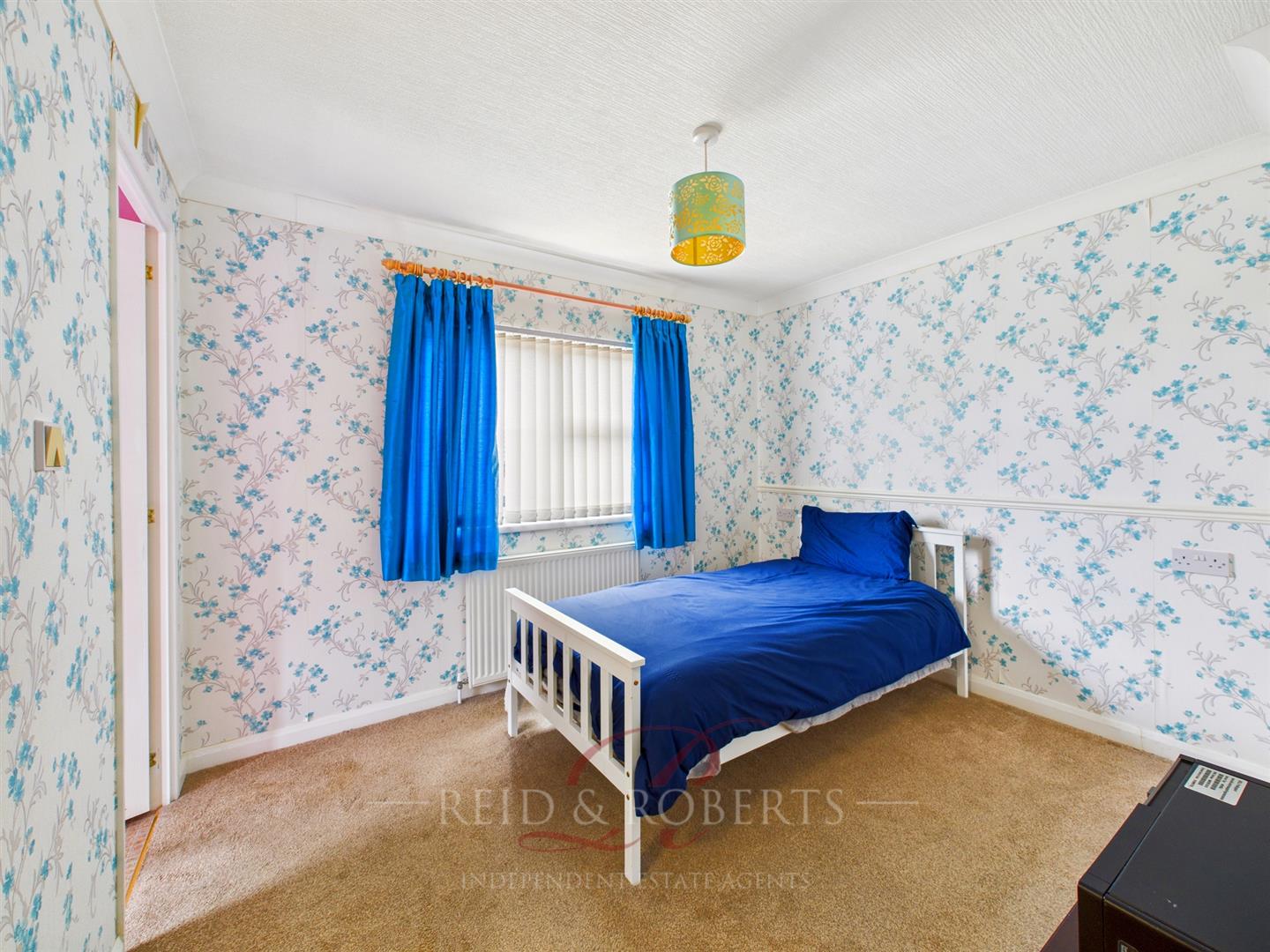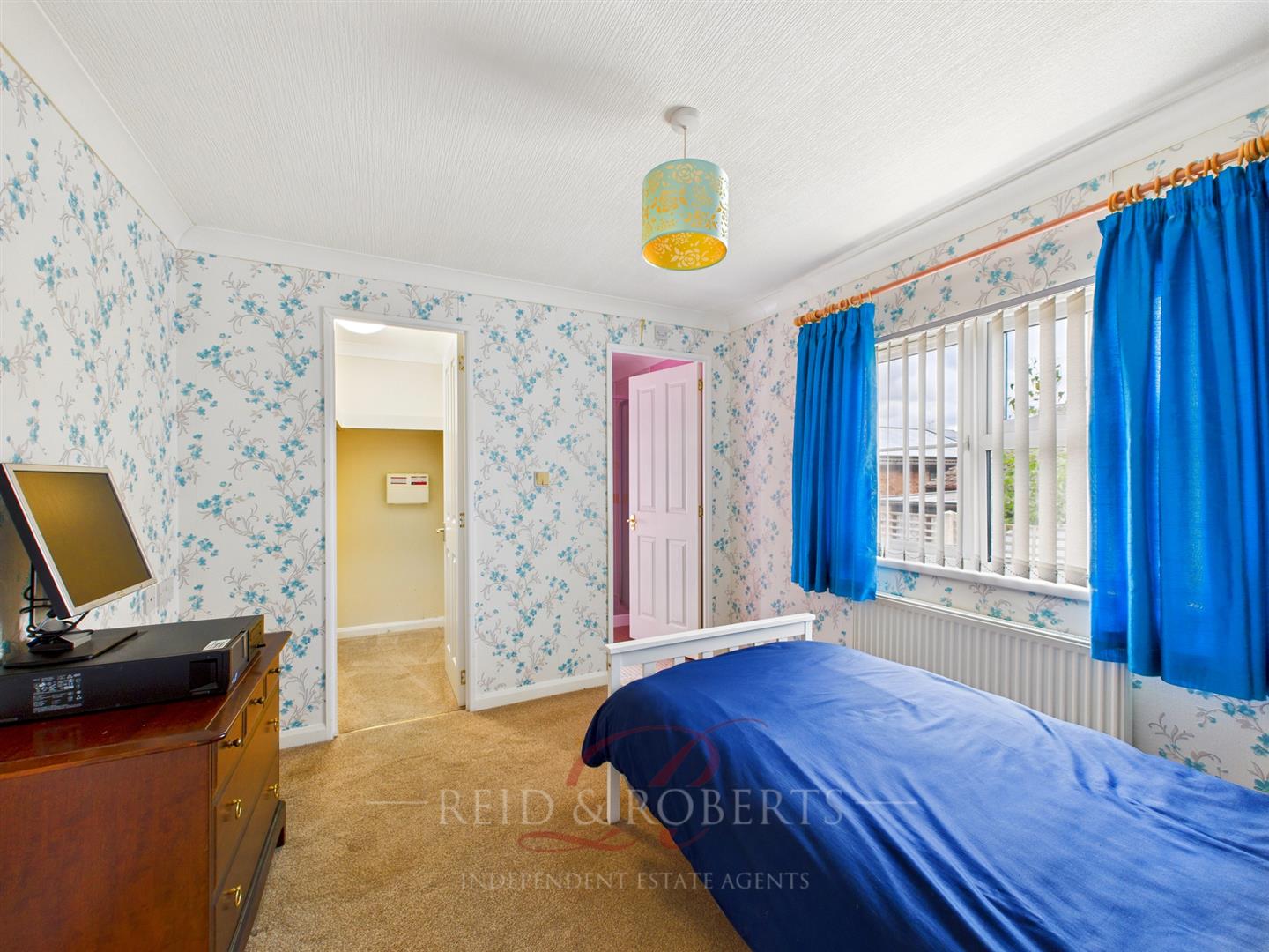 A generous double bedroom with UPVC double glazed window overlooking the rear elevation, panelled radiator, and carpeted flooring. Door leading into a Walk-In Wardrobe with shelving and electric box, providing excellent storage.