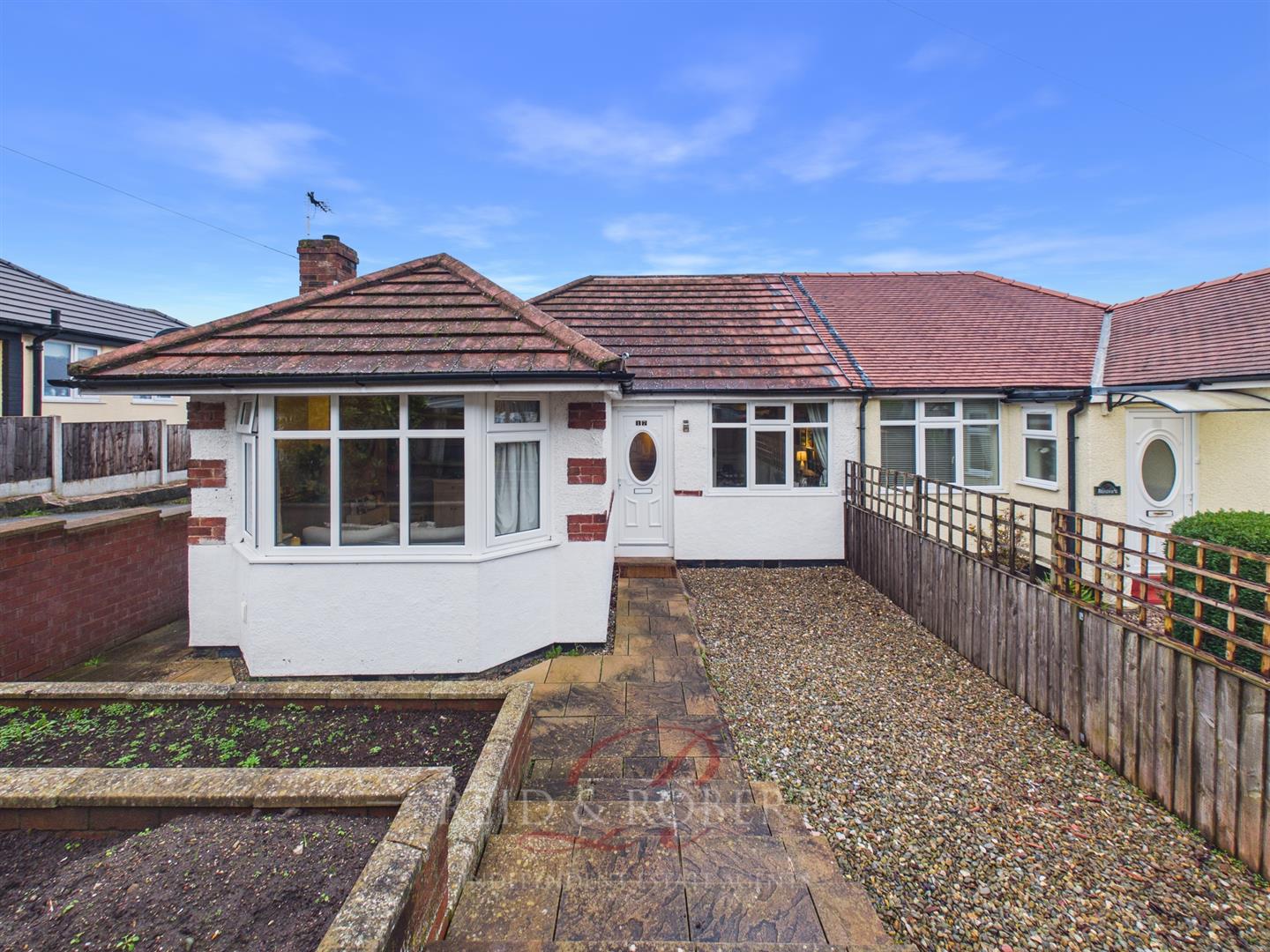 Set on a a generous plot, the property is approached via a decorative gate with steps and pathway leading to the front door. The front garden is designed for low-maintenance with a combination of decorative gravel and tiered planters, offering space to make your own or for further landscaping. Wood panelled fencing provides privacy from the neighbours whilst a brick wall offers a walkway to the rear garden and off-road parking. The off-road parking is approached from the kerb, with ample space for multiple vehicles, closed off with fencing for additional security.