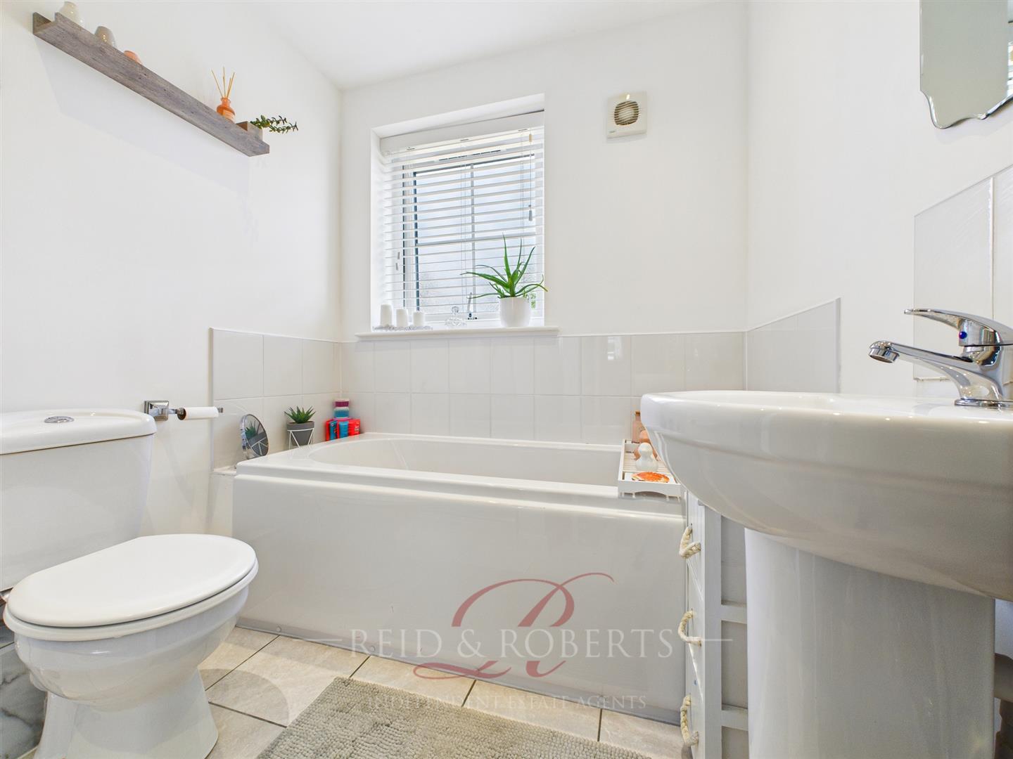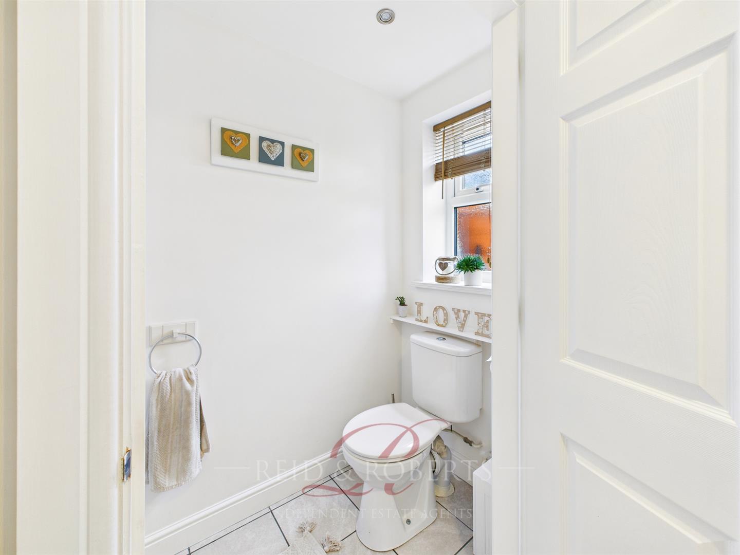 Fitted with a low level W.C and wash hand basin. Finished with tiled flooring and a UPVC double glazed frosted window to the rear.