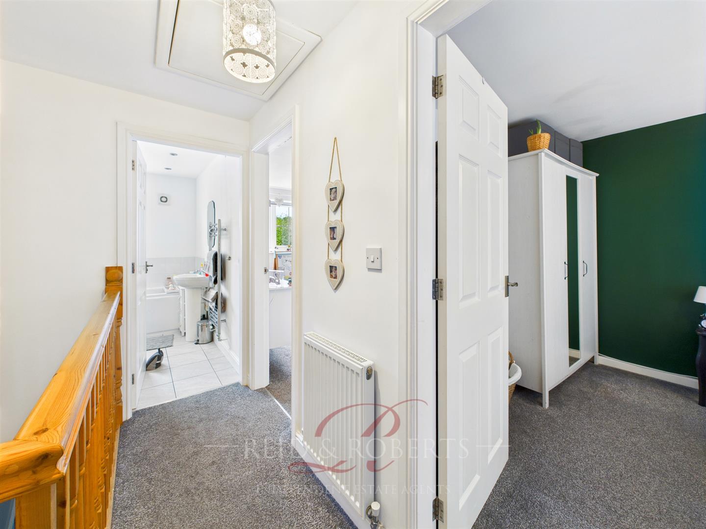 Doors provide access to the bedrooms and bathroom, with a panel radiator and pull-down loft hatch leading to a boarded loft space.