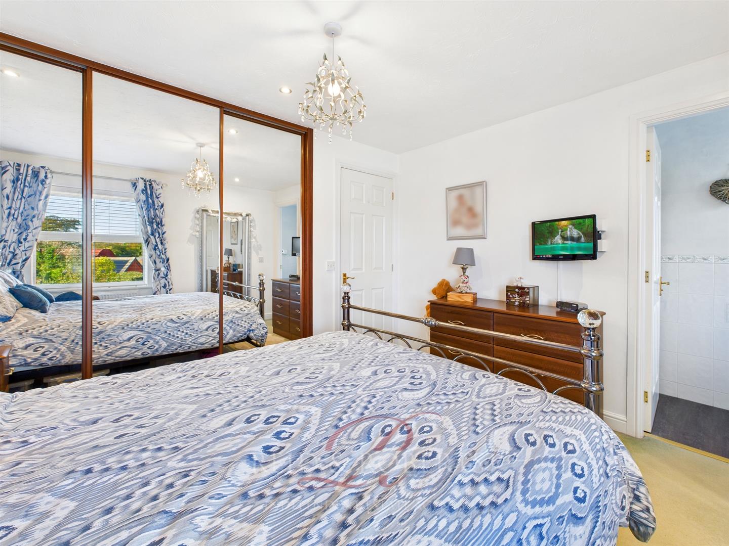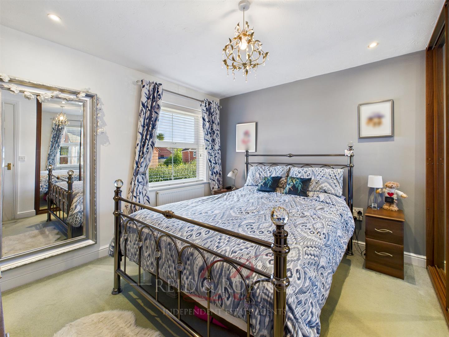 UPVC double glazed window to front elevation. Panelled radiator. Inset ceiling spotlights. Fitted mirrored wardrobes with sliding doors.