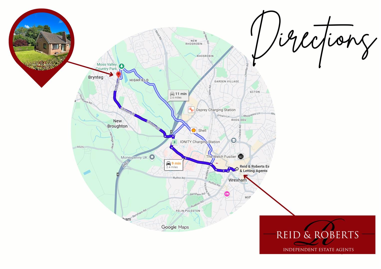 Located on the fringe of Moss Valley Country Park, popular for its scenic walks, lakeside setting and golf course, the property also benefits from excellent road links to the A483, Wrexham City Centre (approx. 2.5 miles), Chester, Shropshire, Glyndwr University and Wrexham Maelor Hospital. A local primary school and nearby amenities offer everyday convenience.