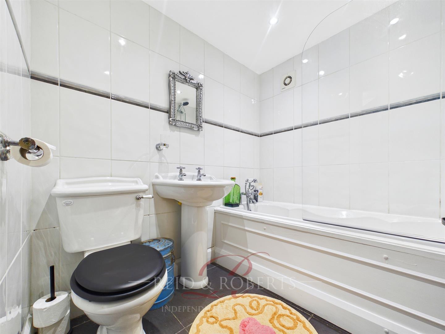 Fitted with a three piece suite comprising a bath with overhead shower, wash hand basin and WC.
