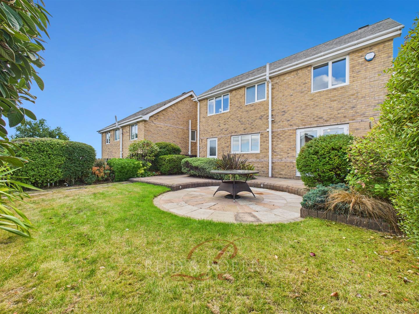 To the rear, the landscaped garden offers a delightful blend of low-maintenance lawn and patio areas, perfect for both relaxation and entertaining. A circular paved seating area provides an ideal spot for outdoor dining, while well-established borders and mature shrubs create a fully enclosed area enhancing a sense of privacy and attractive greenery. Paved stepping stones leads through to space for a sunken hot tub which frame views towards the Dee Estuary.
